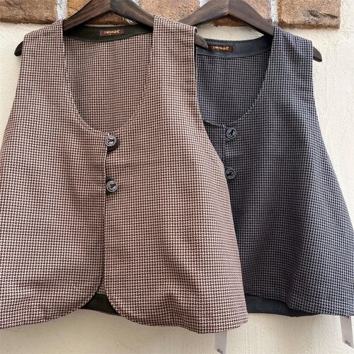 千鳥格子のおしゃれな生地。 綿100% ブラウン、グレー 見返しに別生地を使ってて、動いた時のチラ見えもかわいい! ¥8,600+税(¥9,460) ポポパンツ。 もちろんセットアップも可能🙆♀️ お揃い生地のベレー帽♡ ¥8,900+税(¥9,790)